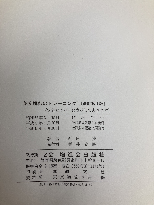 英文解釈のトレーニング Z会出版 西田 実