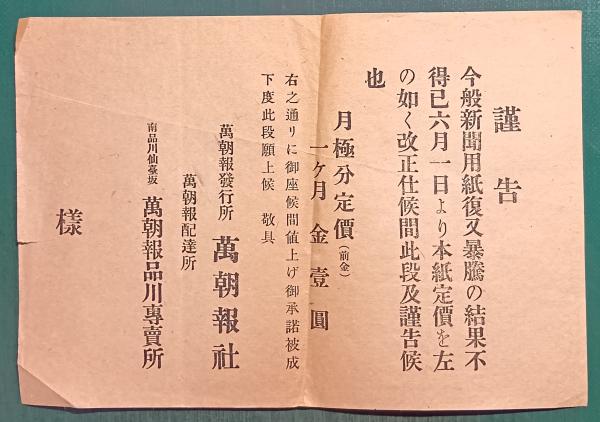 • 出版社 万朝報社・万朝報社品川専売所