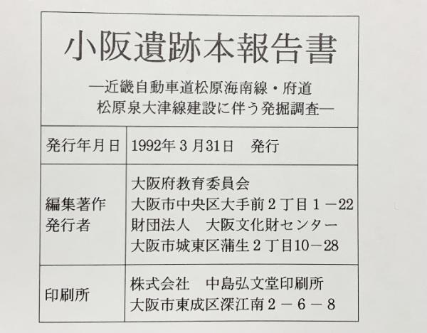 小阪遺跡本報告書(大阪府)(本文編+図版編+自然科学考察編/全3冊セット)大阪府教育委員会・大阪文化財センター 1992年