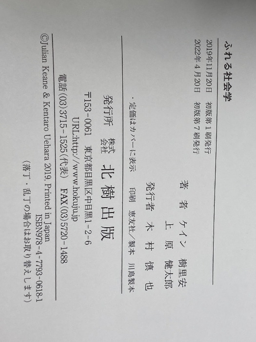 ふれる社会学 北樹出版 上原 健太郎