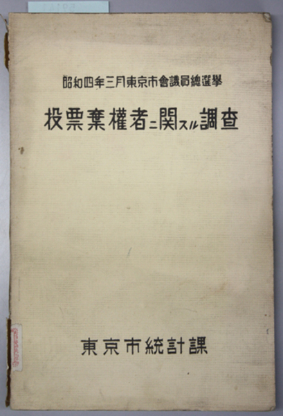 投票棄権者ニ関スル調査 昭和4年3月東京市会議員総選挙