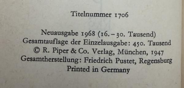 • 刊行年 Neuausgabe 1968:新装版