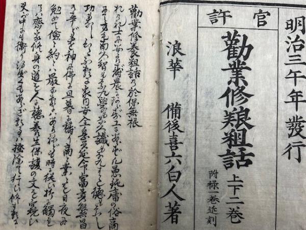 勧業修養粗話 官許 附共3巻3冊揃 (上下・附録)