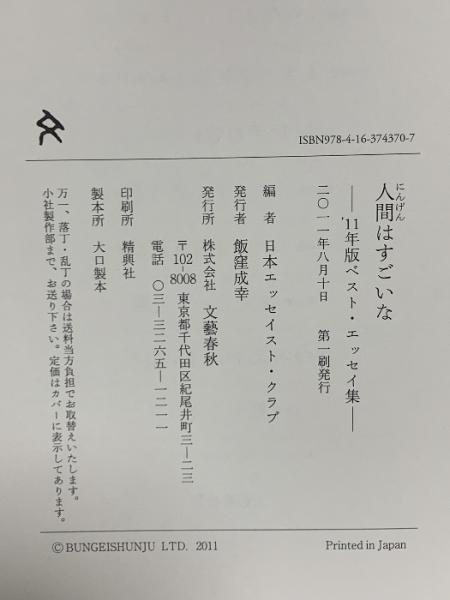 人間はすごいな '11年版ベスト・エッセイ集 文藝春秋 日本エッセイスト・クラブ