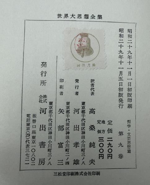 世界大思想全集 哲学・文芸思想篇 9巻 スピノーザ/ライプニッツ 初版