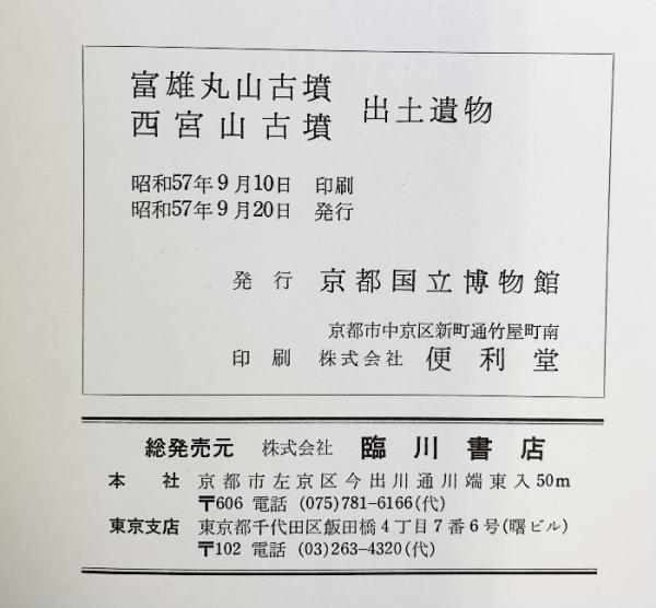 富雄丸山古墳・西宮山古墳 出土遺物(京都府)発行:京都国立博物館 総発売元:臨川書店 昭和57年