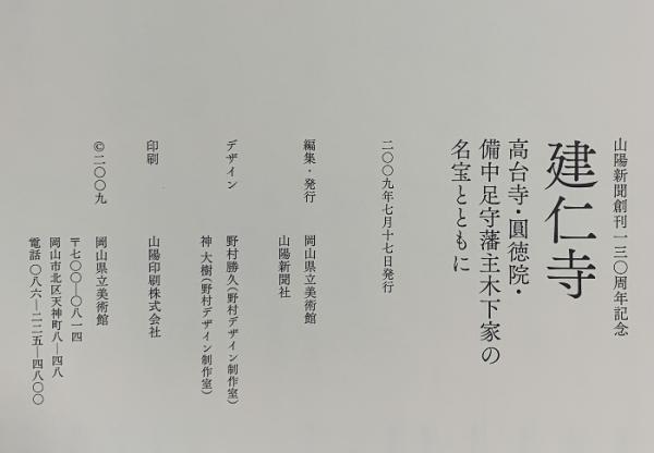 図録 山陽新聞創刊百三〇周年記念 建仁寺 高台寺・圓徳院・備中足守藩主木下家の名宝とともに 2009 岡山県立美術館 山陽新聞社