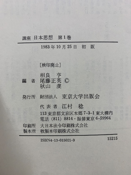 講座 日本思想 全5巻揃