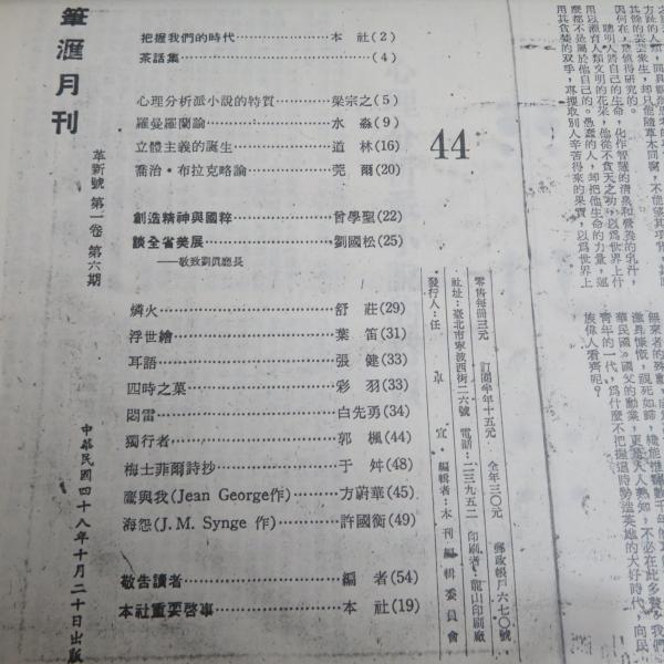 • 解説 「筆匯(革新号)」は、1950年代末から1960年代初頭にかけて台湾で発行され、当時の文学界に大きな影響を与えた総合文芸雑誌。