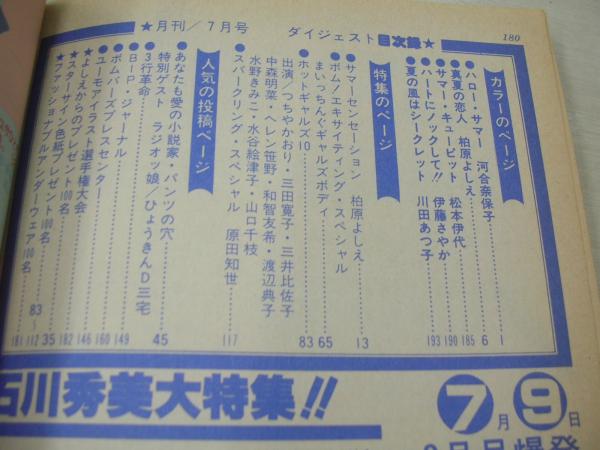 BOMB ボム 1982年07月号 柏原よしえ 表紙+巻頭特集+3折ピンナップ(対面は河合奈保子) 河合奈保子・巻頭グラビア 石川秀美 北原佐和子 つちやかおり 三井比佐子 甲斐智枝美 水野きみこ 松本伊代 伊藤さやか 川田あつ子