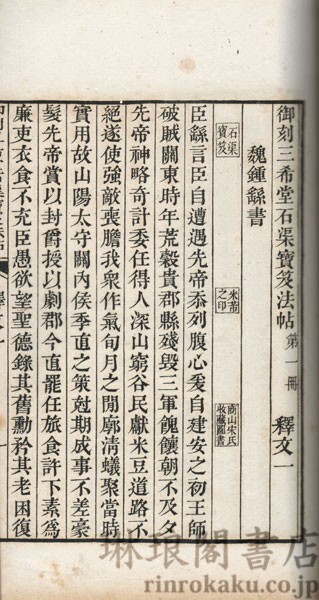 御刻三希堂石渠宝笈法帖釈文