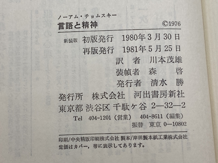 言語と精神  現代思想選〈2〉 河出書房新社 ノーアム・チョムスキー