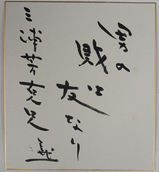 藤本義一色紙 為書有 『男の財は友なり』毛筆書