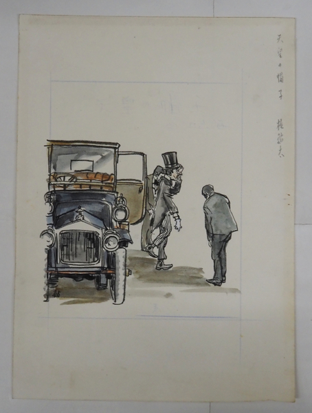 梶鮎太装幀画稿 水彩画 『天皇の帽子/今日出海』昭43・9春陽文庫の表紙画稿 <イメージサイズ165×135ミリ 用紙270×195ミリ>