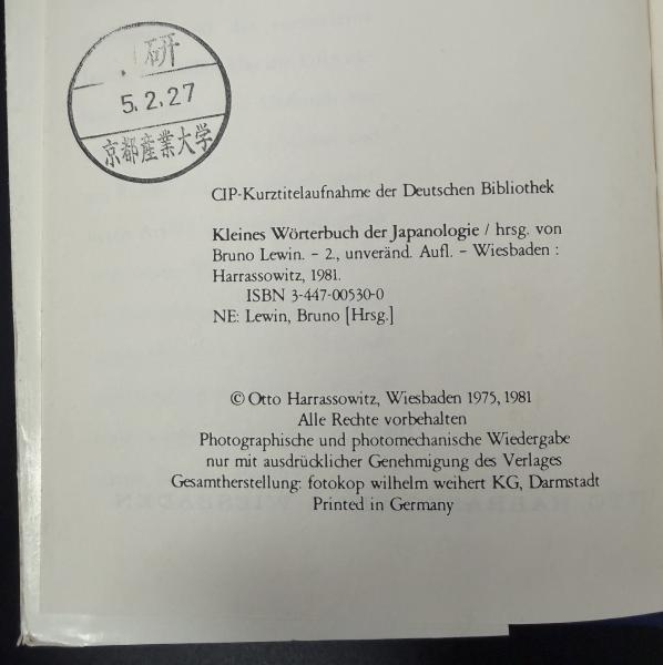 【ドイツ語洋書】『日本学小辞典』(Kleines Wörterbuch der Japanologie) 第2版