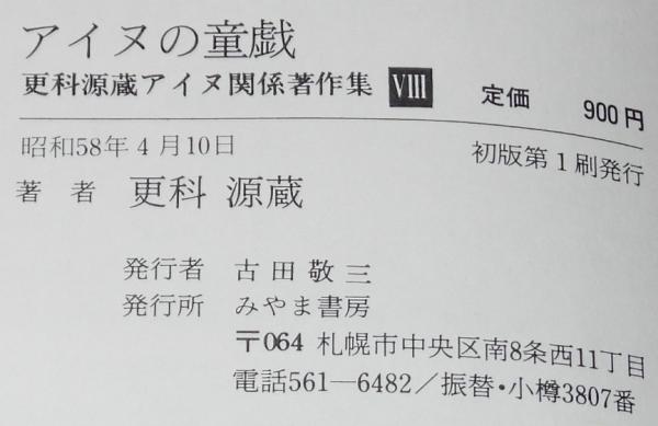 • 解説 更科源蔵 アイヌ関係著作集 VIII アイヌの童戯 みやま書房 昭和58年4月初版 B6判帯付.