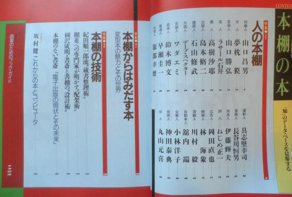 書斎SUPER整理術 「知」のデータ・ベースを見参する 特集1/人の本棚 ラサール石/高樹沙耶/デーブ・スペクター/ワダエミ/服部幸應/ねじめ正一/林海象 他 特集2/本棚からはみだす本・変型本の魅力とその世界 特集3/本棚の技術 紀田順一郎流“蔵書整理術” 棚並べの専門家が明かす“配架術” 楜沢成明・書斎と書棚の“設計術” 他