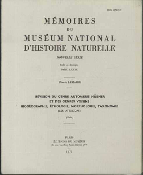 Revision du Genre "Automeris" Hubner et des Genres Voisins Biogeographie、 Ethiologie、 Morphologie、 Taxonomie (Lep. Attacidae) <Memoires du Museum National d’Histoire Naturelle.Series A : Zoologie>