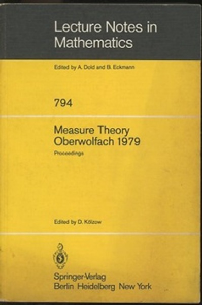 Measure Theory Oberwolfach 1979 Proceedings of the Conference held at Oberwolfach、 Germany、 July 1-7、 1979 <Lecture Notes in Mathematics 794>