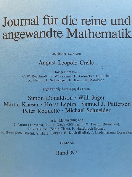 Journal Fur Die Reine Und Angewandte Mathematik : Band 397