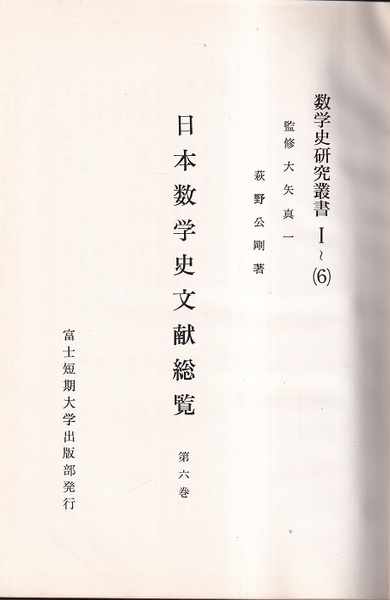 日本数学史文献総覧 6 <数学史研究叢書 Ⅰ/6>