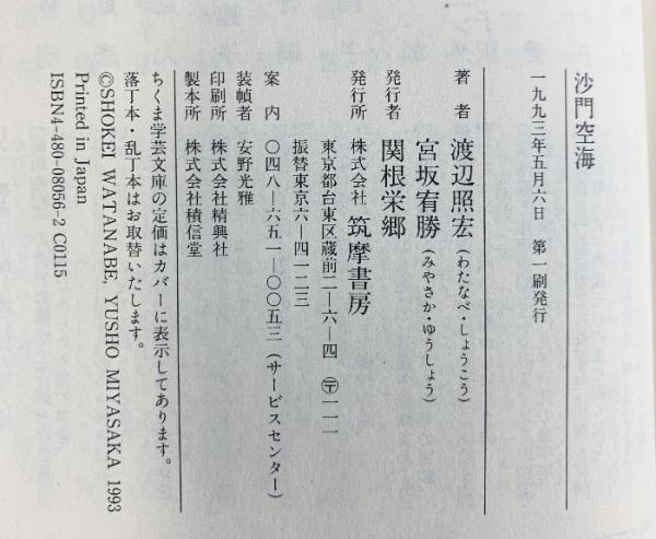 沙門空海 (ちくま学芸文庫 ワ 1-1) 筑摩書房 渡辺 照宏