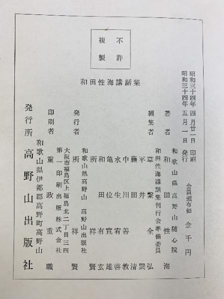 和田性海講話集 高野山出版社 和田性海 昭和34年 真言宗