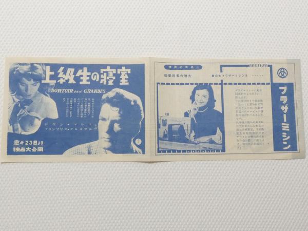 1026◆映画 パンフレット チラシ◆上級生の寝室 ジヤン・マレエ フランソワズ・アルヌウル  39.5cm×13.5cm