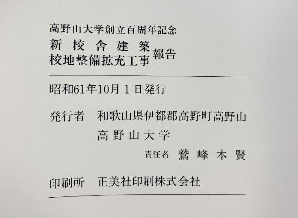 高野山大学創立百周年記念 新校舎建築・校地整備拡充工事報告 高野山大学 昭和61年
