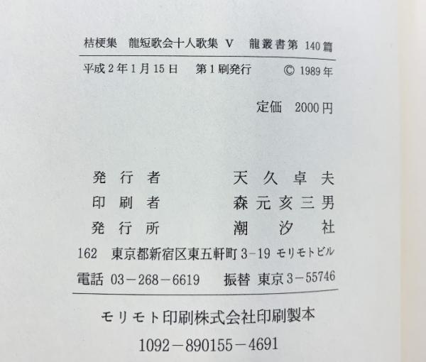 龍短歌会十人歌集(5)『桔梗集』潮汐社 平成2年 龍叢書第140篇
