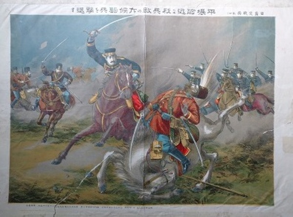 平壌附近我兵敵の斥候騎兵を撃退す (日露交戦画第四)
