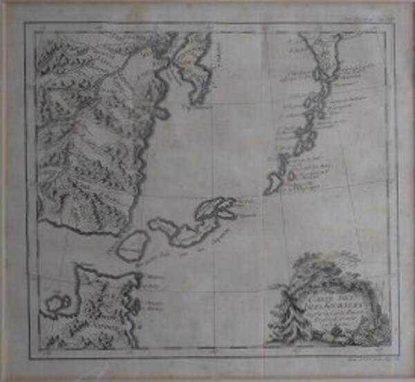 • 解説 千島列島地図 銅版刷 額サイズ43×46㎝