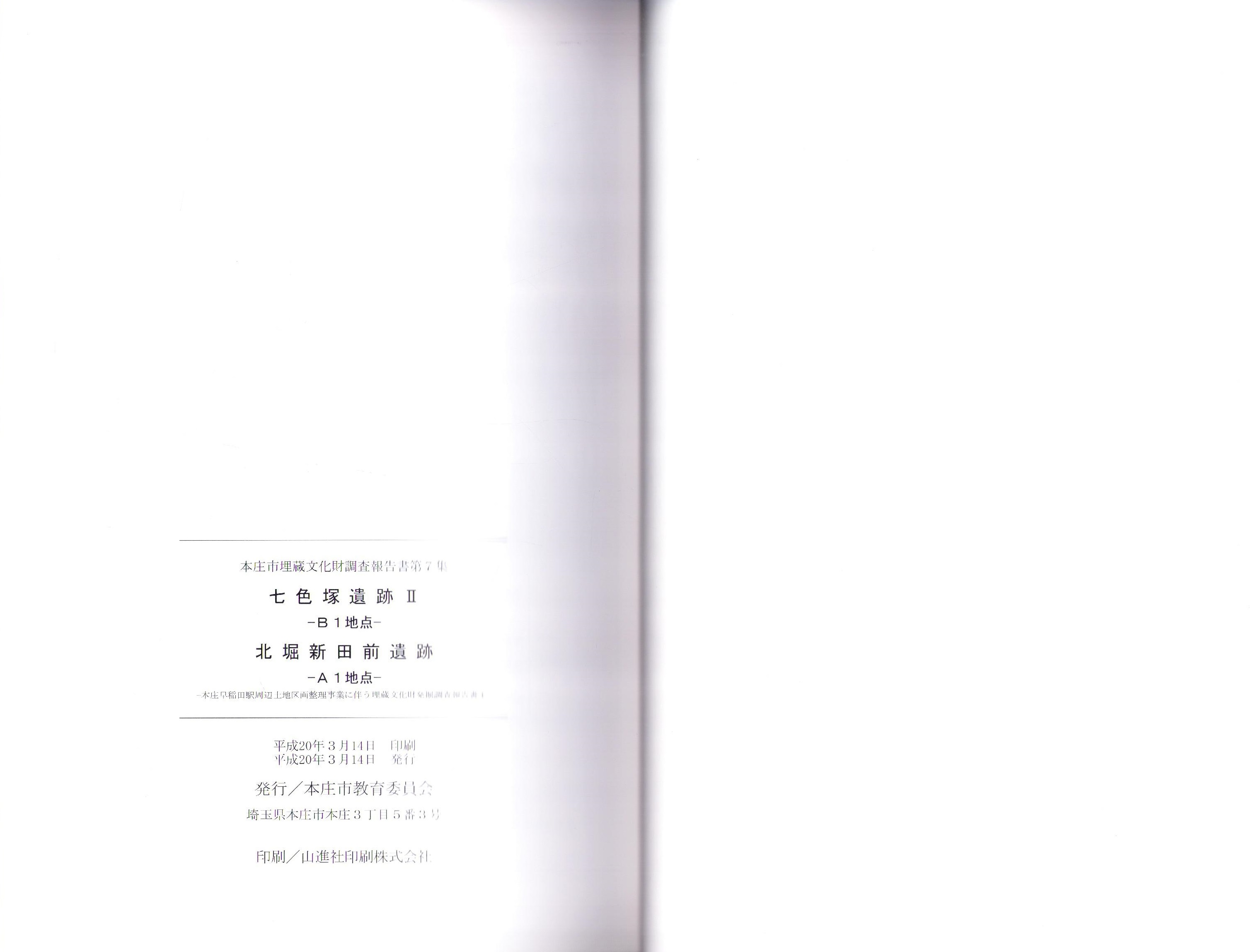 七色塚遺跡Ⅱ(B1地点)・北堀新田前遺跡(A1地点) -本庄市埋蔵文化財調査報告書 第7集-(埼玉県)