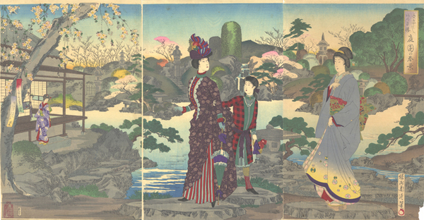 • 解説 大判錦絵37×70.5糎 3枚続 右下破れ