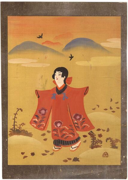 • 解説 絹本 彩色31.5×24cm(シートサイズ)1枚汚レ 台紙貼付
