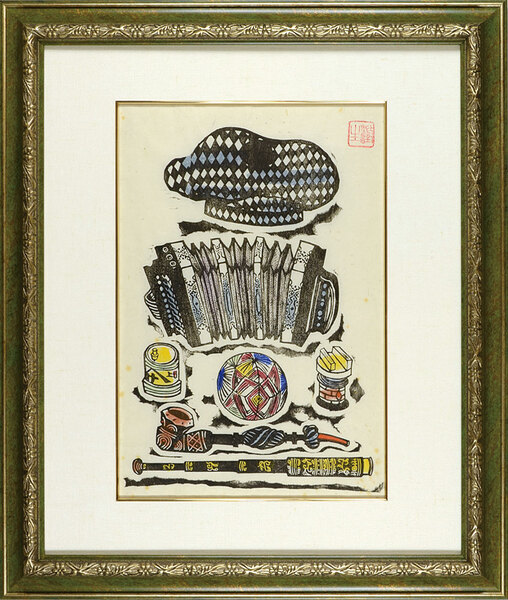 頭巾・手風琴・煙管・遠眼鏡 Hood, Accordion, Pipe, Telescope
