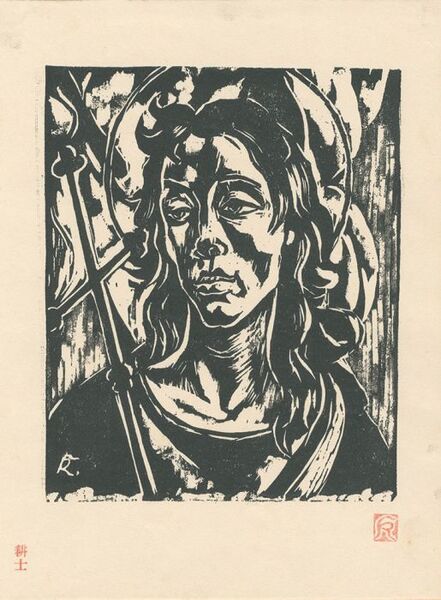 • 解説 木版19.6×16cm(イメージサイズ)1枚極少シミ 一部台紙(シミ、折レシワ有)に貼付 創作版画集『一木集(VI)』より