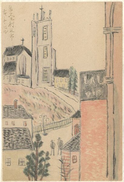 • 解説 水彩25×16.5cm(シートサイズ)1枚裏打 木版画「丘の上の教会」の下絵
