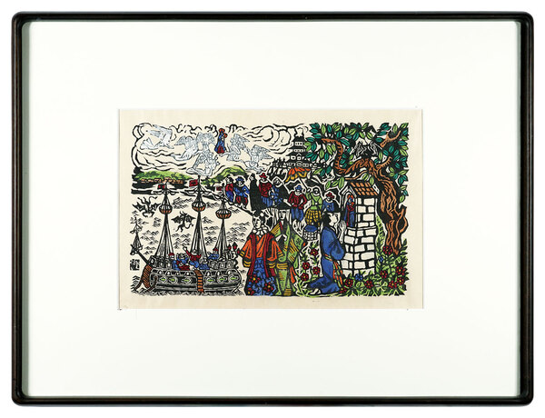 • 解説 木版 手彩21.5×33.5cm(イメージサイズ) / 47×62cm(額サイズ)額装(箱欠) 1面Frame without box良好