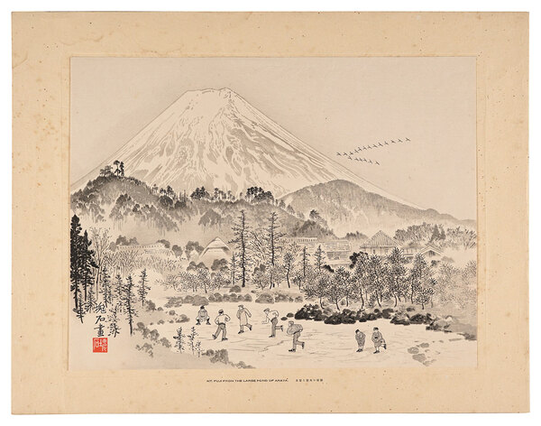 • 解説 木版27×35cm(シートサイズ)専用台紙(ヤケ、シミ)1枚original mount (stained and tanned)少シミ  定方塊石画伯 富士版画傑作選 彫摺 <a href=https://www.yamada-shoten.com/onlinestore/art.php?artist=%E5%B7%9D%E9%9D%A2%E7%BE%A9%E9%9B%84%EF%BC%88%E6%A0%B9%E6%9D%A5%E8%8E%B1%E5%B1%B1%EF%BC%89&search_key=artist">川面義雄</a> 塊石版画刊行会"