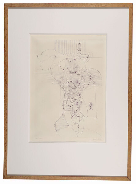 • 解説 銅版 33.5x23cm(イメージサイズ) / 60x43.5cm(額サイズ)ed.100額装 1面Frame 極少シミ 少波打ち 1ヶ所弱いアタリ  BELLMER OEUVRE GRAVE(DENOEL)No.108