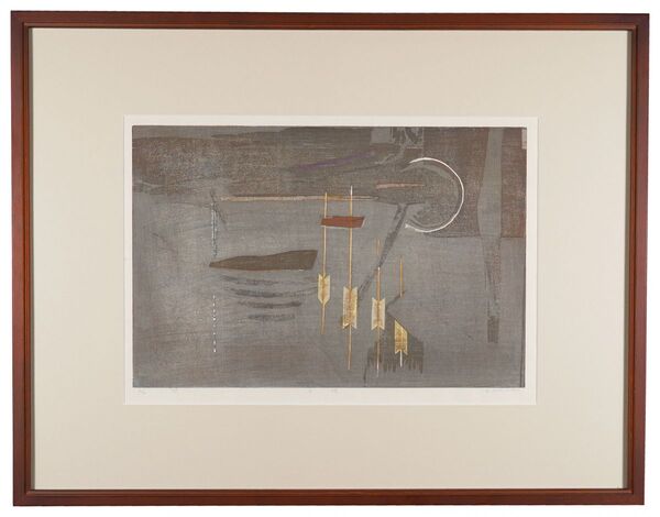 • 解説 木版 28x43cm(イメージサイズ) / 53.5x68.5cm(額サイズ)ed.20額装 1面Frame 概ね良好