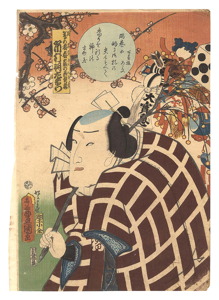 • 解説 Woodblock Print大判1枚摺良 トリミング 裏打 極少虫穴 顔少汚レ 端部折レ 鳶の者春霞の贔屓蔵/市村羽左衛門