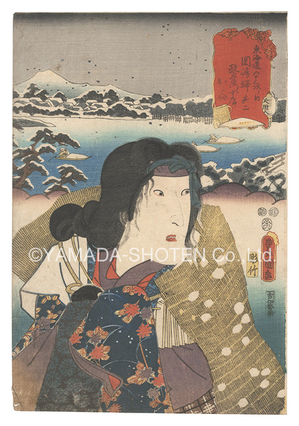 役者見立東海道五十三駅 岡崎駅其二 政右衛門女房お谷 Actors for the Fifty-three Stations of the Tokaido Road / Okazaki, No. 2: Masaemon's Wife Otani