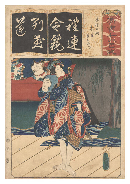 清書七伊呂波 れ 連理の柵 お半 長右衛門 Seven Calligraphic Models for Each Character in the Kana Syllabary / The Syllable Re for the Play Renri no shigarami: Ohan and Cho'emon