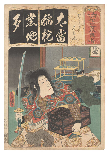 清書七伊呂波 た たから子の児雷也 Seven Calligraphic Models for Each Character in the Kana Syllabary / The Syllable Ta for Takarago: Jiraiya