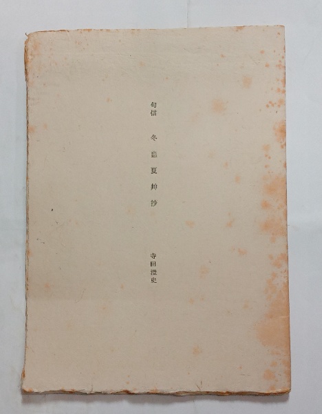 • 解説 神尾筑馬刊。限定3部。「舟蕃舎他彼此」(葉書大の通信)1~5(昭51)を貼ったもの。和紙未綴じ装。巻頭に毛筆句入。表紙に少し浮染。