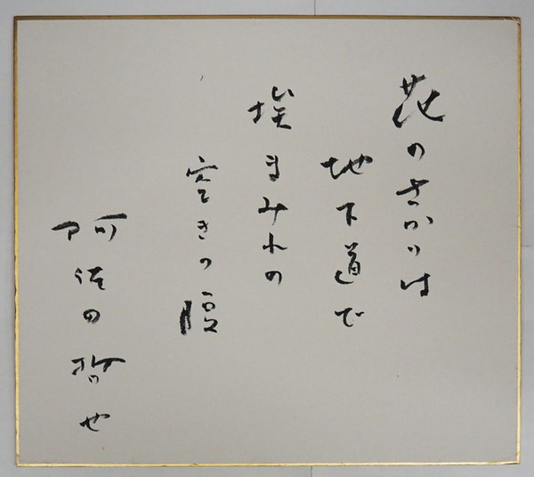 阿佐田哲也色紙 『花のさかりは地下道で埃まみれの空きっ腹』 毛筆書 少痛