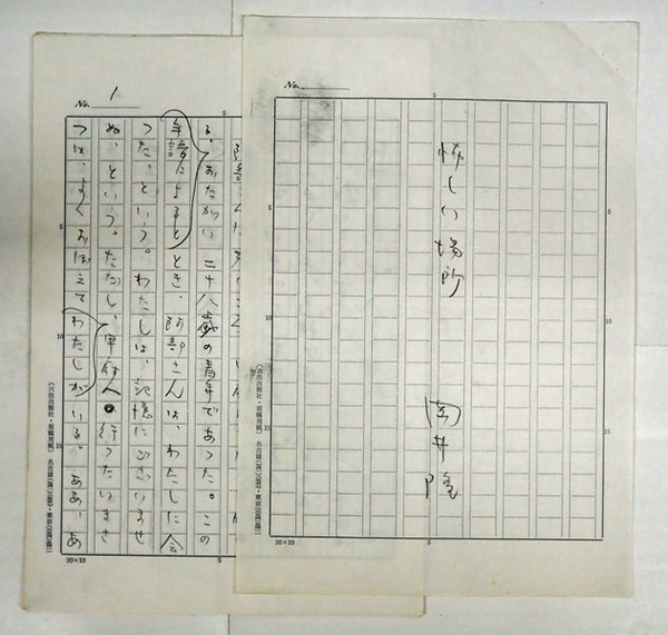 岡井隆草稿 『怖しい場所』 鉛筆書二百字詰11枚完 1枚目は題字と署名のみ