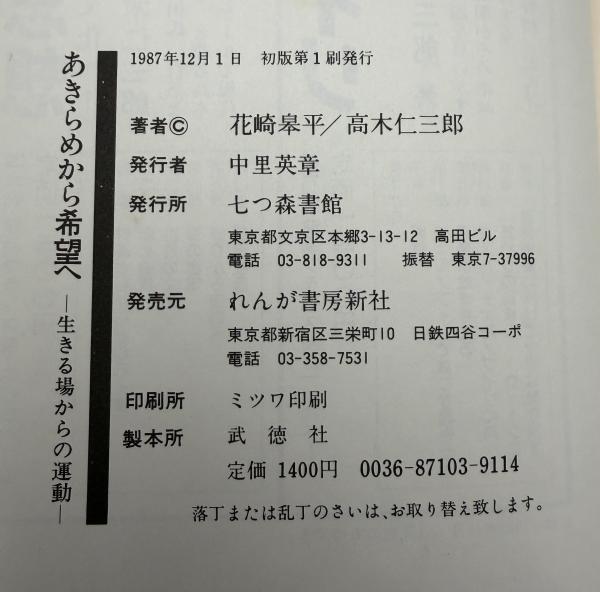 あきらめから希望へ : 生きる場からの運動 初版1刷
